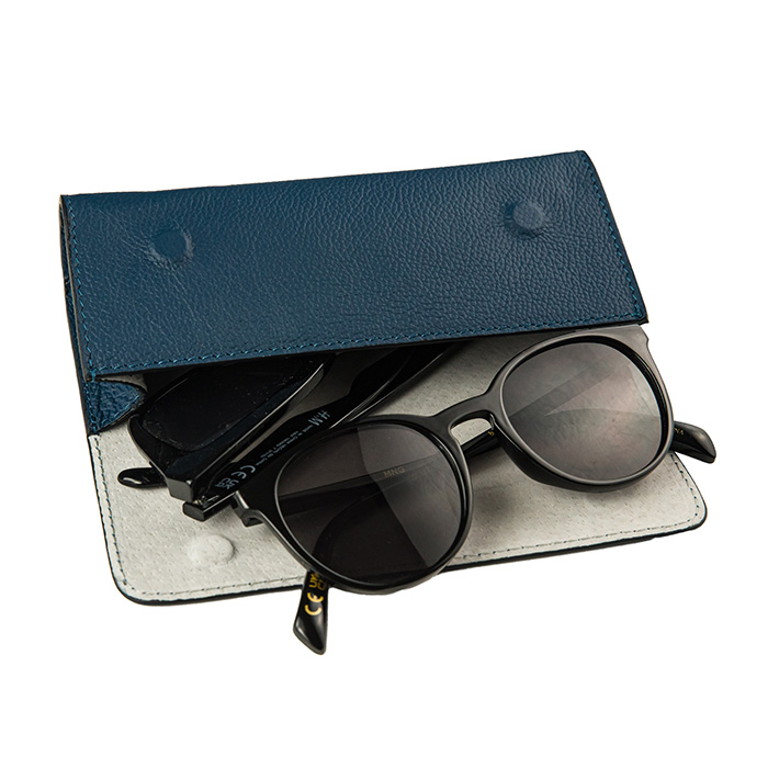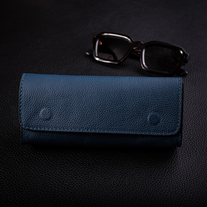 Etui din piele naturală, albastru – Protecție elegantă pentru două perechi de ochelari
